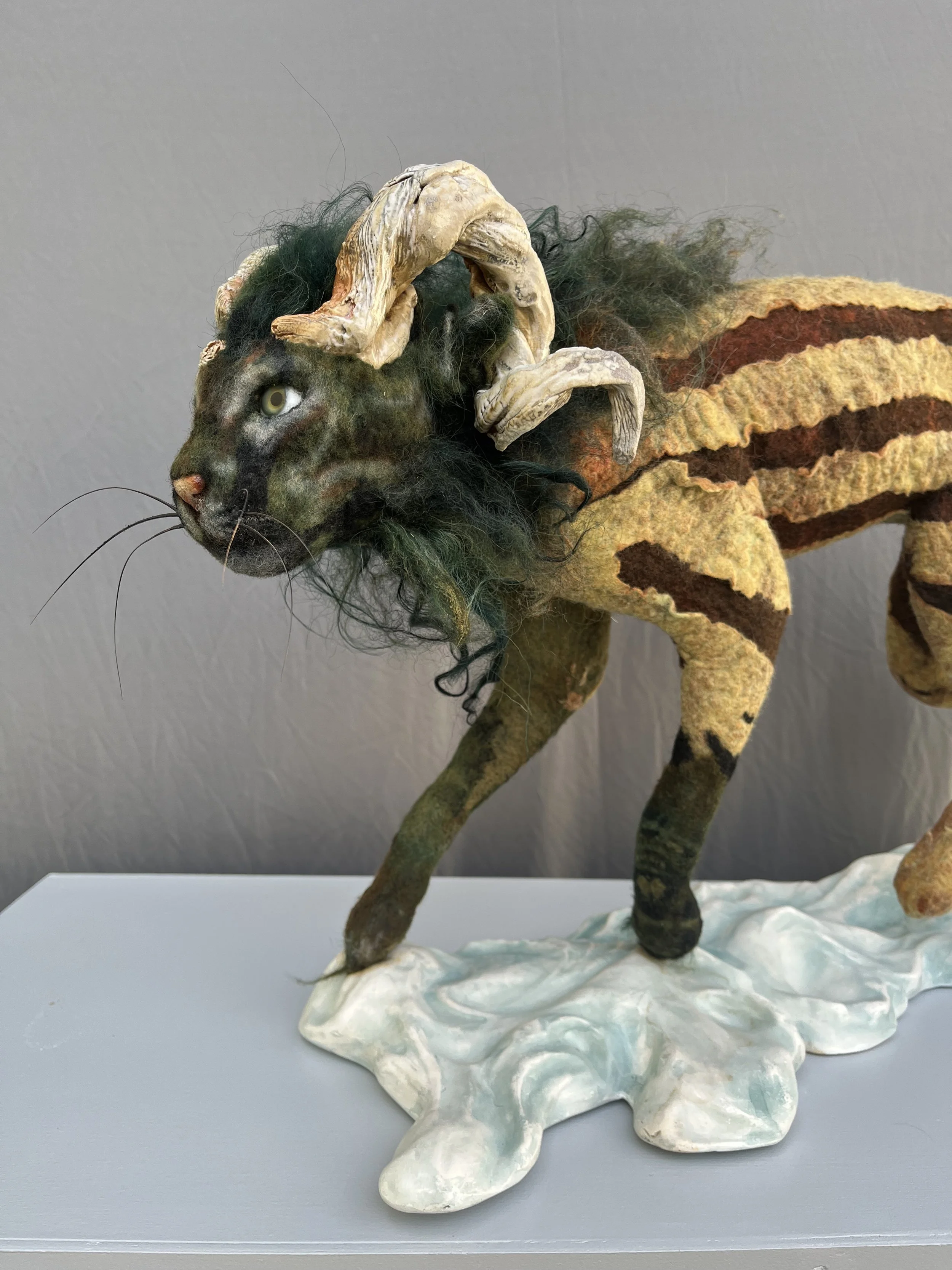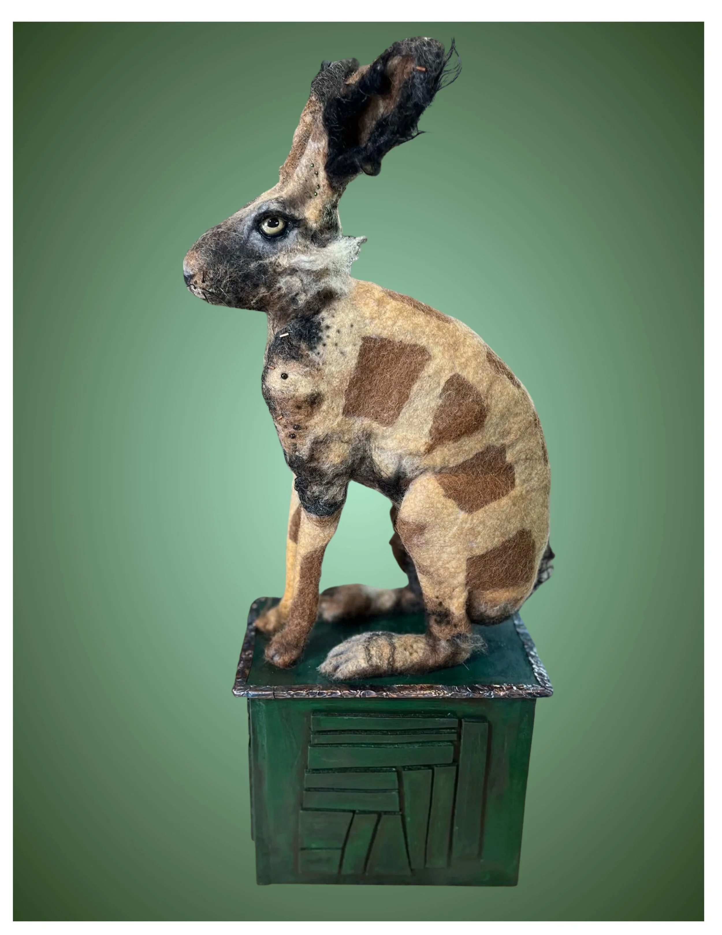 The unpredictable outcomes of many of her multi-faceted artistic methods contribute to the final demeanor of her animal sculptures. The creatures themselves sit at the intersection of West and Whimsy, with each one made with the idea that it may have come from another time or place.