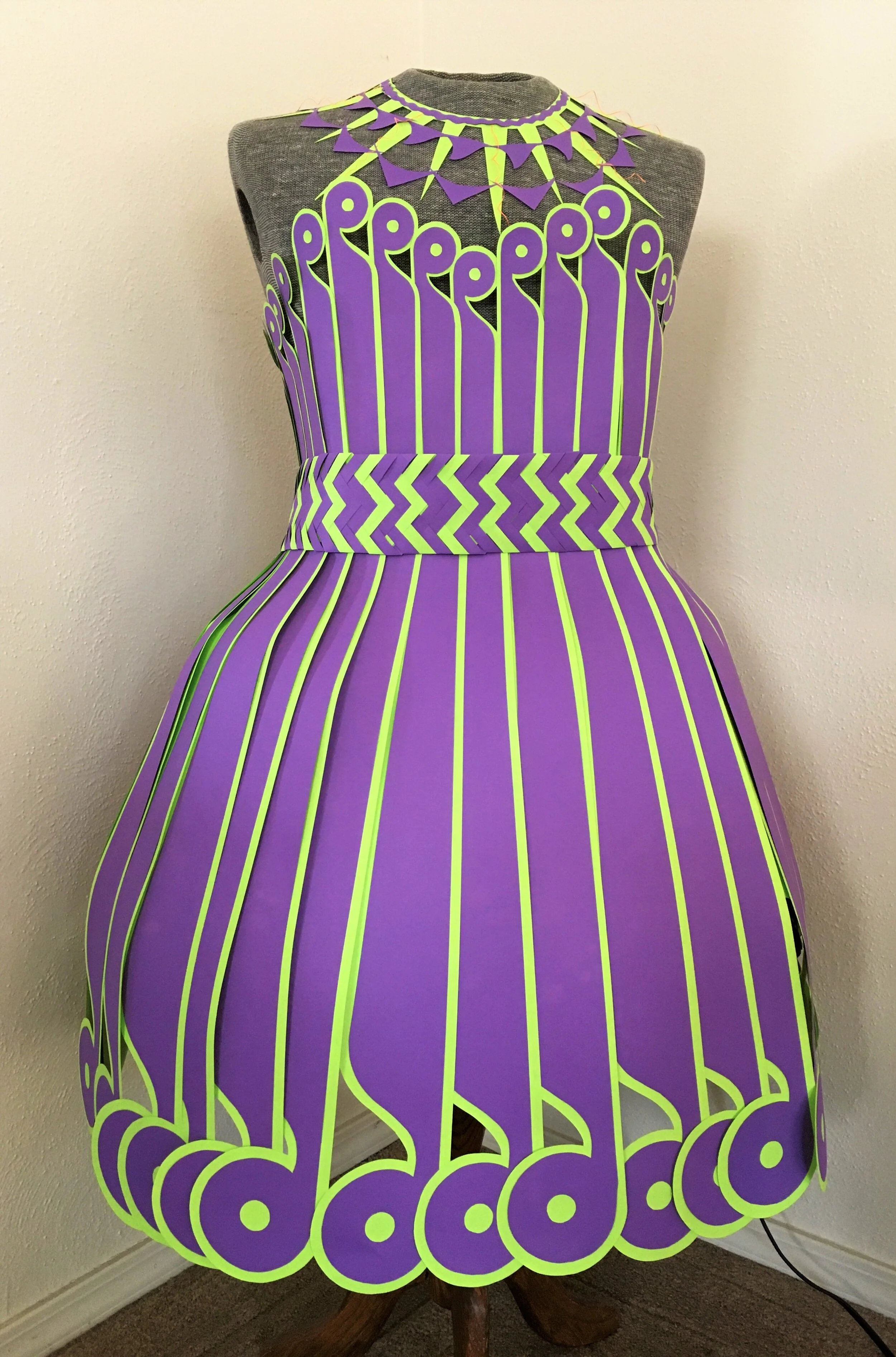 PLAYFUL PAPER is my homage to the simplicity and innocence of childhood and the pleasure of making stuff. I used readily available materials: paper, cutting implements and glue as needed. I focused on elementary concepts and bright colors in uncomplicated manipulations: weaving, cutting large shapes, simple collages, even playing dress-up. All these were consciously chosen to evoke our inner child, those moments of childish creation, those times where the world is unimportant, and we live only in the creative moment. Art is born in that place. Our adult lives can be complicated, frantic, sophisticated: the future is uncertain and anxious. As I made these pieces, however, I forgot all that.