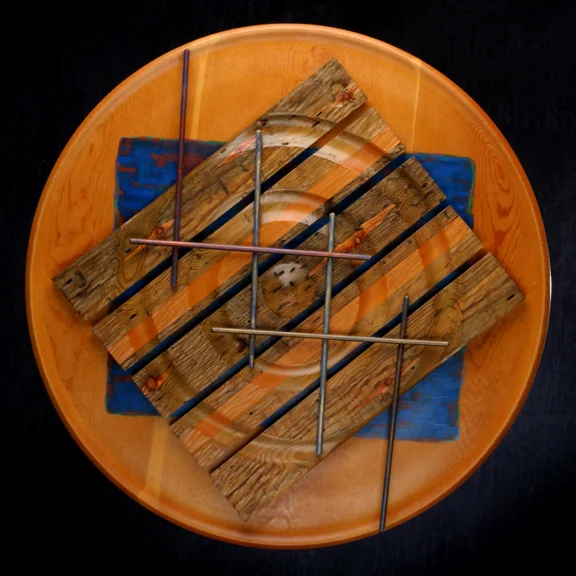 I surround myself with pieces of wood, cloth, rock, tubes of paint and life, then I let my need for organization start finding places for these parts. By addition and subtraction, work is carried on until there is nothing left to do. This sometimes happens quickly but with some works has taken years as if I need to acquire the specific knowledge or experience to complete the next step.