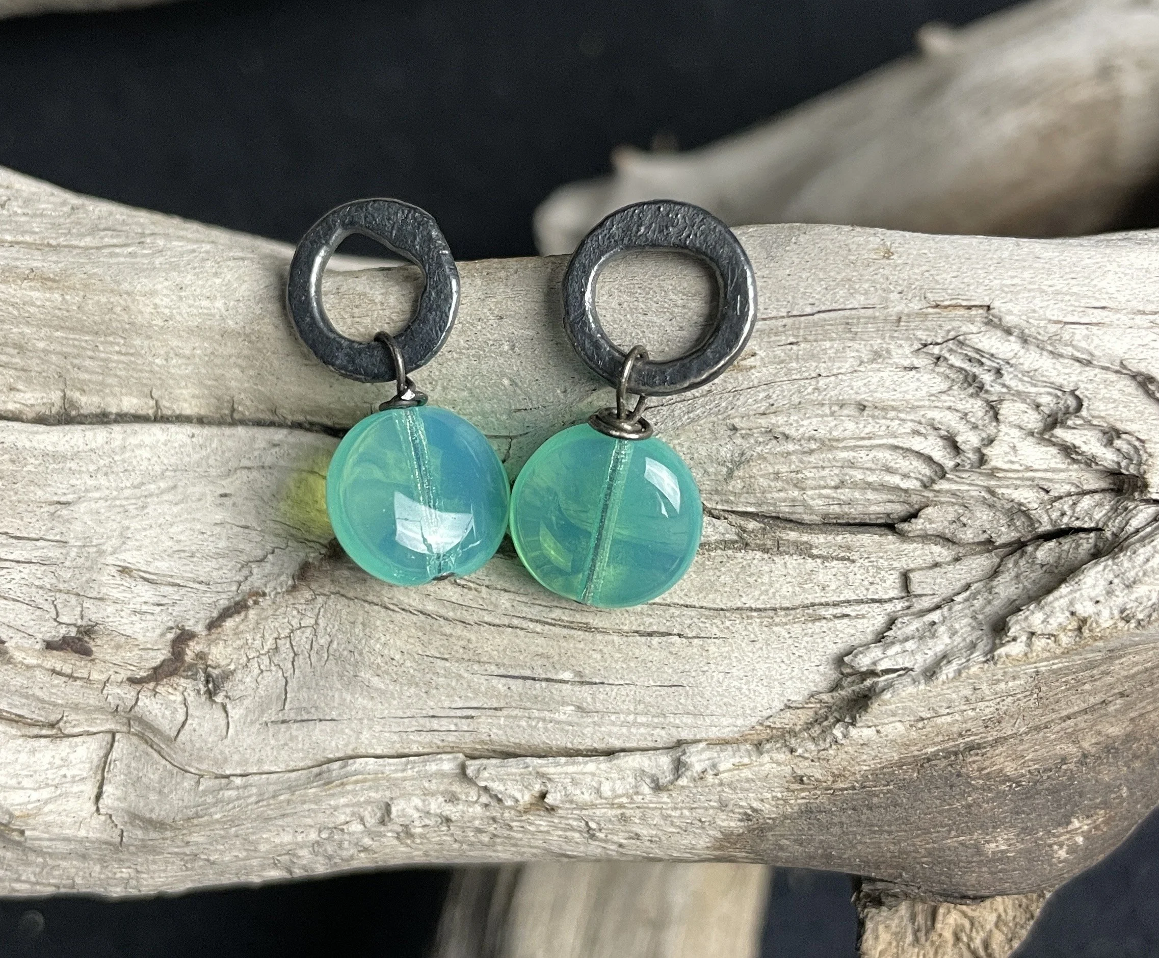 Hand hammered metals and beautiful stones create a very organic line of jewelry.