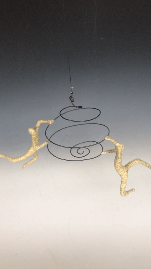 Movement, form, and texture have been infused into these paper maché figures that Sarena loves to create from wire, paper, fabric, paste, and patience. Each one has it's own identity and place in the world. These whimsical, colorful, and flighty figures can hang anywhere and lighten your load as they move about with intent freedom and spirit. In the evening they cast shadows and continue their dance.